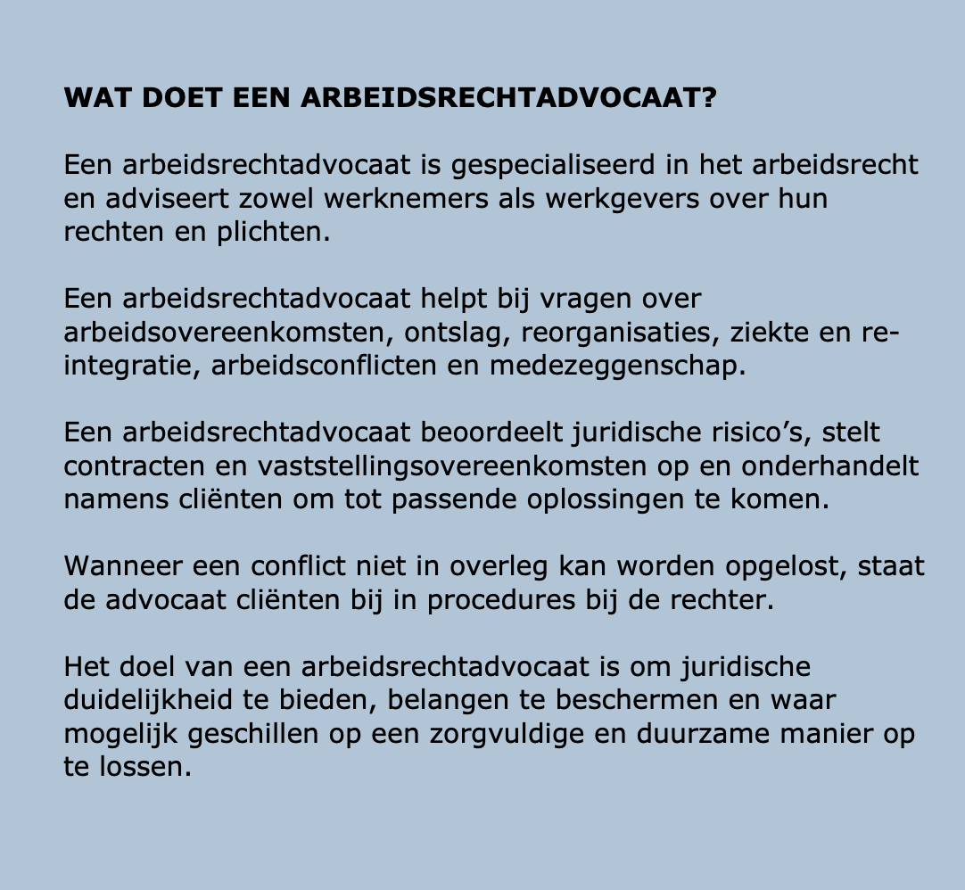 U kunt bij ons terecht voor een Arbeidsrechtadvocaat.