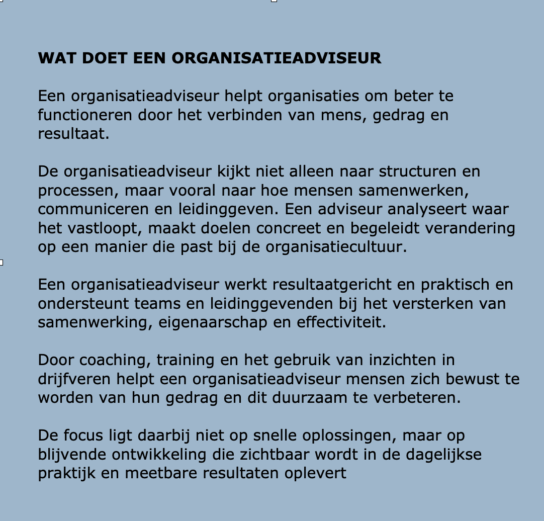 U kunt bij ons terecht voor een Organisatieadviseur.