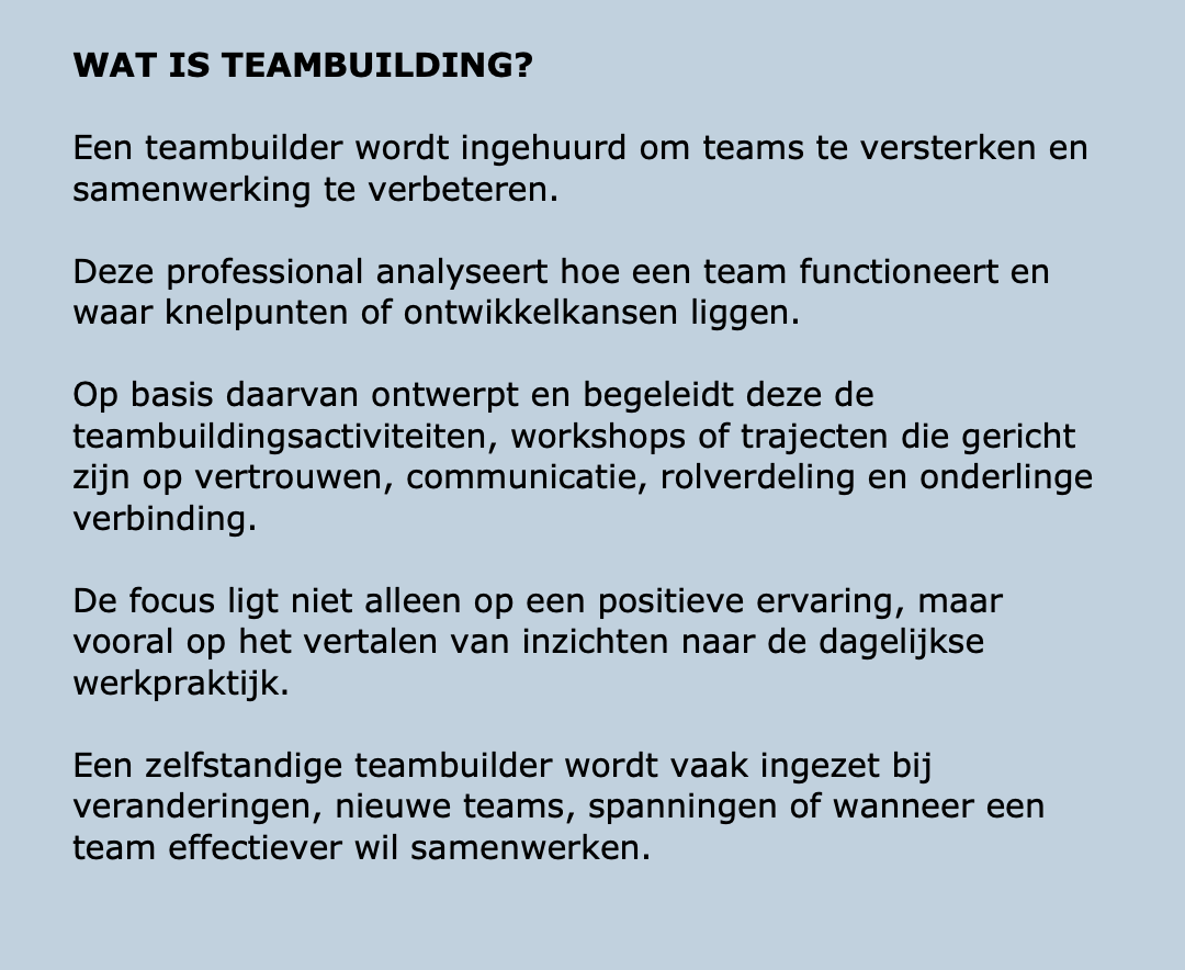 U kunt bij ons terecht voor Teambuilding van uw medewerkers.