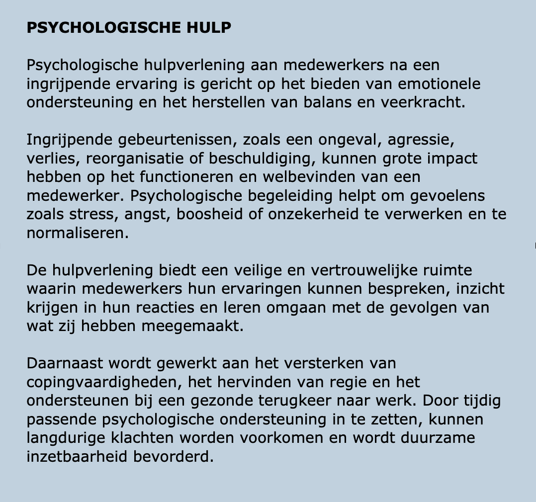 psychologische hulpverlening na o.a. een ingrijpende ervaring