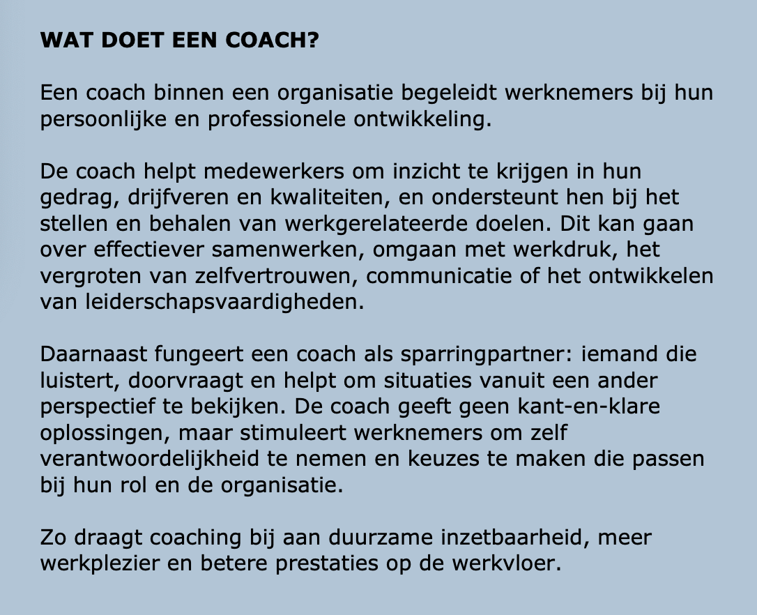U kunt bij ons terecht voor Coaching & Persoonlijke Groei van uw medewerkers.