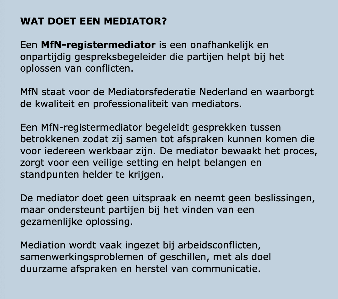 U kunt bij ons terecht voor een MfN-register Mediator.